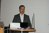 Das Thema der Veranstaltung lautete “Hacking gegen Smartphones und Unternehmensnetzwerke - Die Praxis im Live-Test”. Referent war der medienbekannte professionelle Hacker Götz Schartner.